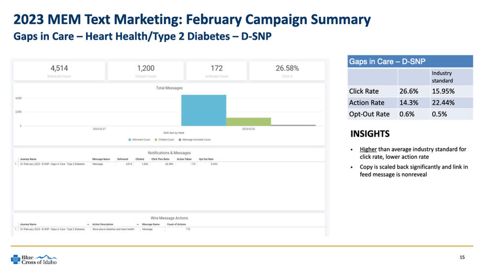 With a proven track record in B2C and B2B digital marketing, including successful SMS marketing launches, my digital campaigns for Blue Cross companies in the Medicare, Medicaid, and Individual markets set out to help members access their care and navigate the complex landscape of health insurance.